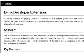 E-ink Simulator Extension är en kostnadsfri Chrome-tillägg som riktar sig till webbutvecklare som vill testa och optimera sina webbapplikationer för e-ink-enheter. Tillägget erbjuder en realistisk simulering av e-ink-skärmar, vilket gör det möjligt för utvecklare att se hur deras applikationer kommer att se ut och fungera på sådana enheter utan att behöva använda fysisk e-ink-hårdvara. Med detta verktyg kan utvecklare spara tid och resurser under testningsprocessen.